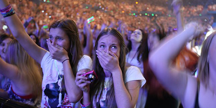 -quando uma menina começa a gritar por um ídolo num show e outras vão indo atrás o efeito pode ser devastador. O que elas sozinhas jamais fariam, quando em grupo vão uma influenciando a outra num crescendo que chega à esquizofrenia, ao desespero. Uma vê a outra gritando e faz igual e de repente estão todas totalmente fora de si. Podem arrancar tufos de cabelo do ídolo, machucar, se tacar, tornam-se perigosas… esse é o efeito psicológico exponencial da prova social.